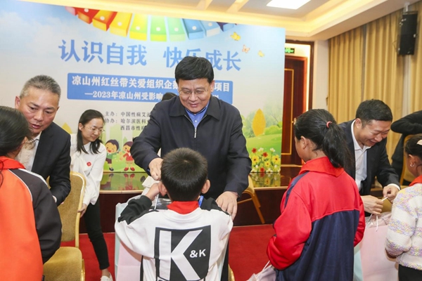10月18日至19日,国家卫生健康委党组成员、副主任,国家疾控局党组书记、局长王贺胜带队赴四川省凉山州开展艾滋病等重大传染病防治工作调研,走访凉山州重大疾病防治指挥中心、西昌市疾控中心艾滋病防治所等单位,召开推进凉山州艾滋病等重大传染病防治工作座谈会,与基层同志深入交流,听取各方面意见建议。王贺胜局长还参加了凉山州红丝带关爱组织企鹅爱心小屋项目受影响儿童心理支持培训活动,看望参加活动的孩子们,还给孩子们带来了御寒衣物和学习用品。